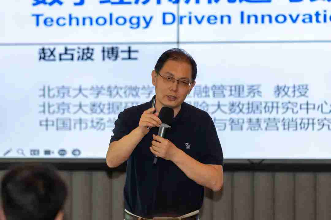 随后,,北京大学软微学院金融管理系教授赵占波博士为与会者带来了数字经济新机遇与数字化转型实践主题的深度分享。。。他首先指出,,在当前移动互联网时代,,技术进步为社会经济的各个领域带来了革命性的变化。。。他强调,,,数字化转型不仅是技术的更新换代,,,,更是一场涉及思维方式和商业模式的深刻变革。。。。企业在面对数字化转型时,,,,需要跳出传统框架,,从更广阔的视角审视自身在行业中的定位和未来发展的可能性。。赵教授还特别提到了数据安全的重要性,,,,随着数据成为国家和企业安全的重要组成部分,,,如何在保障数据安全的前提下实现数字化转型,,是所有企业都需要认真思考的问题。。这不仅是技术层面的保障,,,更是推动数字经济健康发展的关键因素。。。
