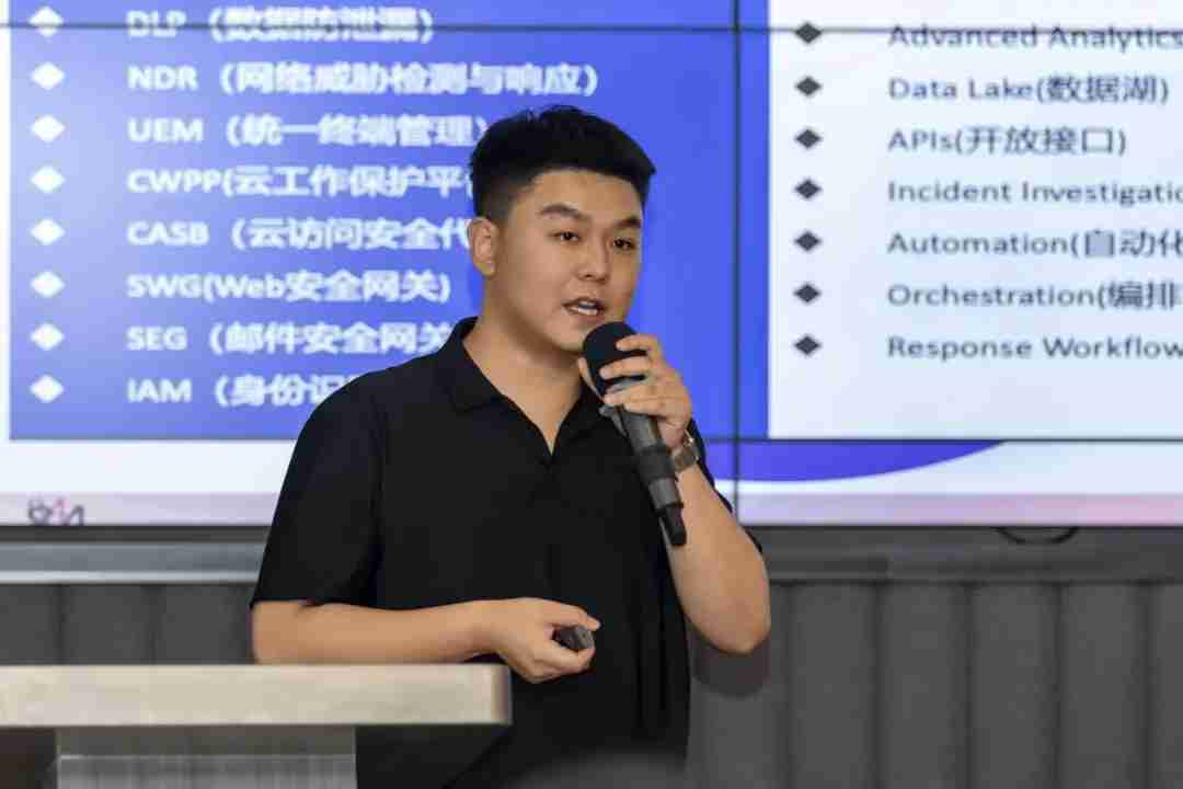 最后,,,山石网科售前工程师郑翔天就以XDR云网边端构建全域融合的安全运营新防线主题进行了分享。。。他深入剖析了当前网络安全形势下,,企业面临的挑战和需求,,,详细介绍了山石网科XDR解决方案的核心优势,,包括多数据源管理、、、多视角安全事件呈现、、、以及自动化协同响应等,,,,为与会者展示了山石网科在安全领域的创新能力和专业服务。。。